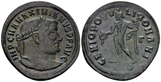 IMP C M A MAXIMIANVS P F AVG; Laur. bust r.