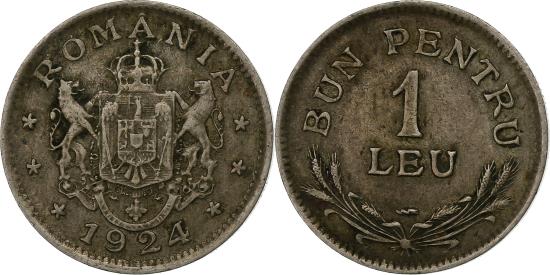 | Romania, Ferdinand I, 1 Leu, 1924, Poissy, Copper-nickel, , KM:46 |