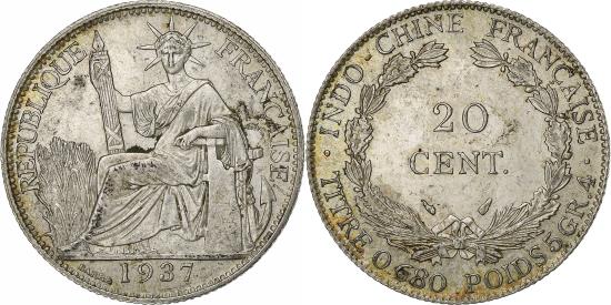 | | French Indo-China, 20 Cents, 1937, Paris, Silver, , Lecompte:236 | | | Liberty seated, date below, Denomination within wreath | | FEATURES |