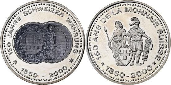 | Switzerland, Medal, 150 Ans de la Monnaie Suisse, 1 Franc, 2000, Copper-nickel |