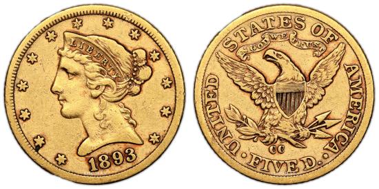 Gold 5 dollars - 1893 CC Carson city - 60 000 examples