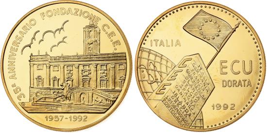 | Italy, Medal, Ecu, 35eme Anniversario Fondazione C.E.E, 1992, Copper-Nickel |