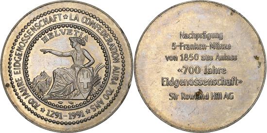 | | Switzerland, Medal, 700 Ans de la Confédération, 1991, Copper-Nickel Gilt | | | FEATURES |