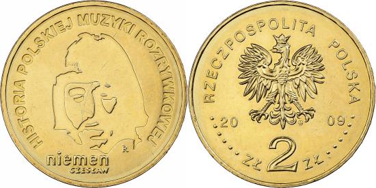 | | Poland, 2 Zlote, 2009, Warsaw, Brass, , KM:684 | | | National arms above value, Two dimensional facing portrait | | FEATURES |