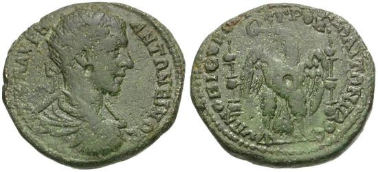 Title: Elagabalus (AD 218-222). Moesia Inferior. Nicopolis ad Istrum. Novius Rufus, consular legate Æ26 / Eagle