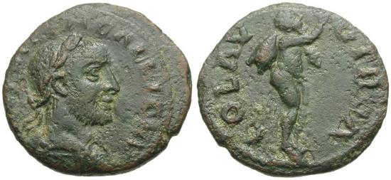 Title: Trebonianus Gallus (AD 251-253). Troas. Alexandria Æ20 / Marsyas