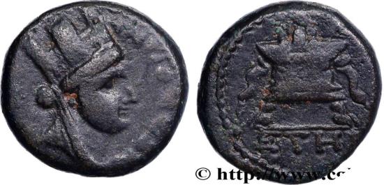 SYRIA - SELEUCIA and PIERIA - ANTIOCHIA Trichalque c. 77-78 Antioche, Syrie, Séleucie et Piérie R1 copper Obverse : Buste voilé, tourelé et drapé de Tyché à droite Reverse : Autel (brasero) allumé, orné d’une guirlande ; grènetis circulaire Commentary : Flan court, centré. Joli buste. Patine foncée