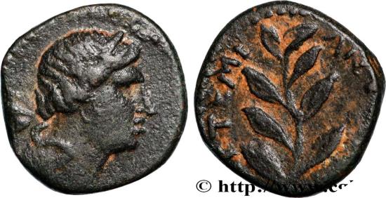 Anépigraphe Tête laurée d’Apollon à droite ; grènetis circulaire