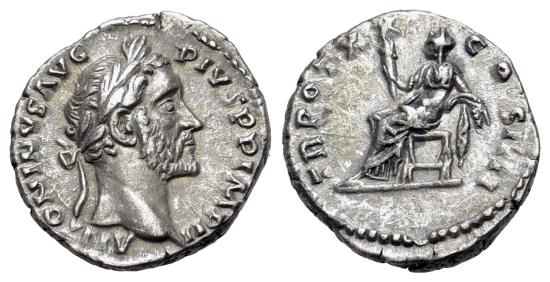 Antoninus Pius (AD 138-161). AR Denarius. Rome, AD 155-156. R/ CERES seated
