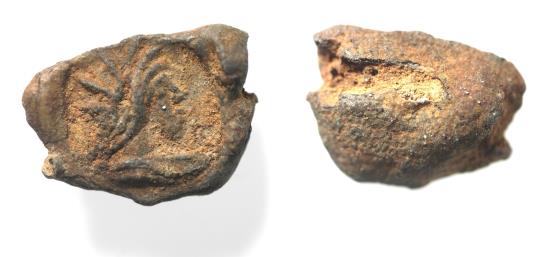 Roman Egypt. 2nd-3rd century AD. Lead seal impression (15 x 12 mm). Draped bust of Helios r.