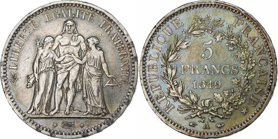 | | Coin, France, Hercule, 5 Francs, 1849, Paris, , Silver, KM:756.1 | | | Hercule, Hercules group, Denomination within wreath | | FEATURES |