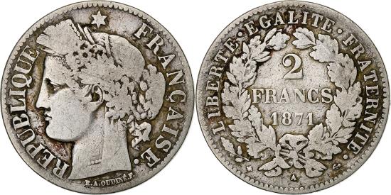 | | Coin, France, Cérès, 2 Francs, 1871, Paris, , Silver, KM:817.1 | | | Cérès, Laureate head left, Denomination within wreath | | FEATURES |