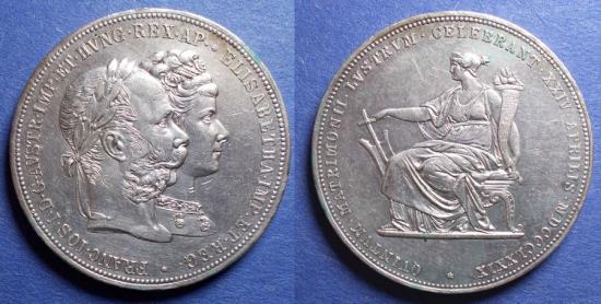 Austria, Franz Joseph with Elizabeth 1867-1916 (1879), Silver 2 Gulden