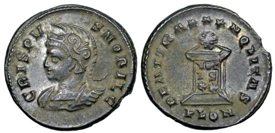 CRISPVS NOBIL C; helmeted and cuirassed bust left.