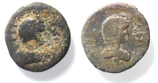 Egypt. Antinoöpolis (?). Circa 2nd-3rd centuries. Lead tessera (22 mm, 9.61g). Draped male bust. / Bust of Antinoös r. Apparently unpublished. Cf. Leu Web Auction 16, 22 May 2021, lot 2650 for a similar piece.