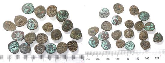 LOT OF 20 AS FOUND: Arabia Felix. Himyarite Kingdom. 100 - 300 A.D. Rare copper Bucranium coins.