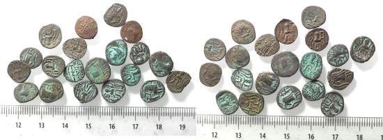 LOT OF 20 AS FOUND: Arabia Felix. Himyarite Kingdom. 100 - 300 A.D. Rare copper Bucranium coins.