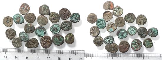 LOT OF 20 AS FOUND: Arabia Felix. Himyarite Kingdom. 100 - 300 A.D. Rare copper Bucranium coins.