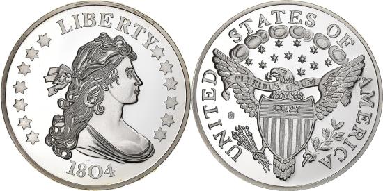 | United States, Medal, Draped Bust Dollar 1804, Copper Plated Silver, COPY |
