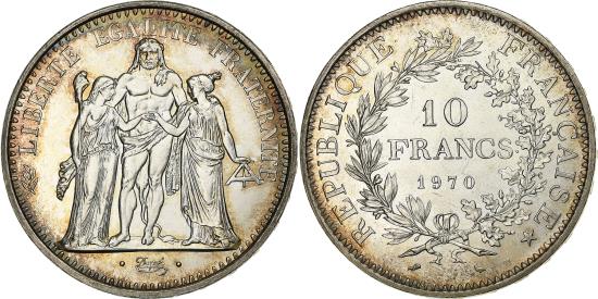 | | Coin, France, Hercule, 10 Francs, 1970, Paris, , Silver, KM:932 | | | Hercule, Denomination and date within wreath, Hercules group, Without mint mark. | | FEATURES |