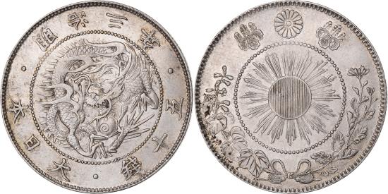 | | Japan, Meiji, 50 Sen, 1870, Silver, | | | Year 3 (1870). Cleaned. Y#4 ; JNDA 01-13. | | FEATURES |