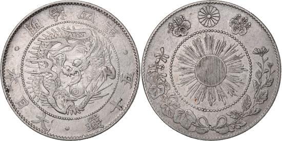| | Japan, Meiji, 50 Sen, 1871, Silver, | | | Year 4 (1871). Cleaned. Y#4 ; JNDA 01-13. | | FEATURES |