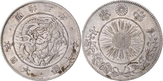 | | Japan, Meiji, 50 Sen, 1870, Silver, | | | Year 3 (1870). Cleaned. Y#4 ; JNDA 01-13. | | FEATURES |
