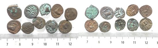 LOT OF 10 AS FOUND: Arabia Felix. Himyarite Kingdom. 100 - 300 A.D. Rare copper Bucranium coins.