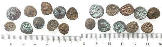 LOT OF 10 AS FOUND: Arabia Felix. Himyarite Kingdom. 100 - 300 A.D. Rare copper Bucranium coins.