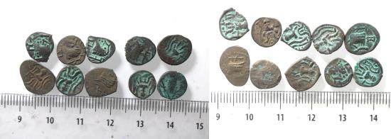 LOT OF 10 AS FOUND: Arabia Felix. Himyarite Kingdom. 100 - 300 A.D. Rare copper Bucranium coins.