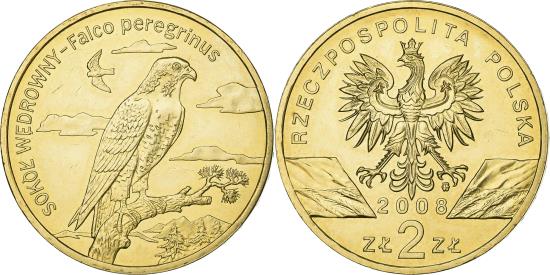 | | Poland, 2 Zlote, 2008, Warsaw, Brass, , KM:627 | | | National arms above flags, Peregrine Falcon perched on branch, RZECZPOSPOLITA POLSKA Ewa Tyc-Karpinska | | FEATURES |