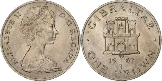 | | Gibraltar, Elizabeth II, Crown, 1967, Copper-nickel, , KM:4 | | | Young bust right, Key below castle divides date, denomination below, Arnold Machin | | FEATURES |