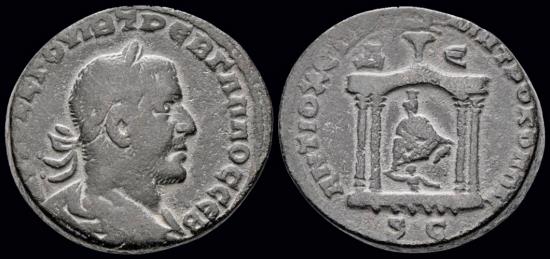 Seleucis and Pieria Antioch Trebonianus Gallus AE oktassarion shrine