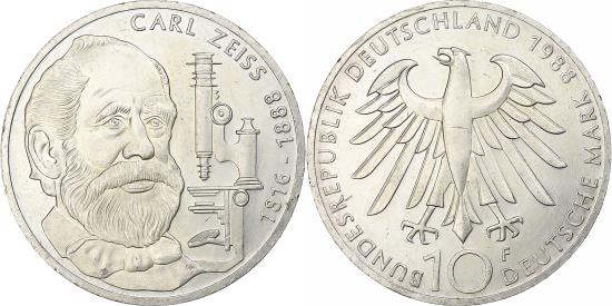 | | GERMANY - FEDERAL REPUBLIC, 10 Mark, 1988, Stuttgart, Silver, , KM:169 | | | Eagle above denomination, Head at left, looking right | | FEATURES |