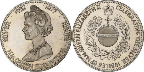 | | United Kingdom, Medal, Queen Elizabeth II, Silver Jubilee, 1977, London | | | 25 years of the Queen's reign, Bust of Queen Elizabeth II, Orb in center with crown above surrounded by wreath, SILVER · 1952 · · 1977 · JUBILEE · H.M. QUEEN ELIZABETH II ·, CELEBRATING THE SILVER JUBILEE OF H.M. QUEEN ELIZABETH II | | FEATURES |