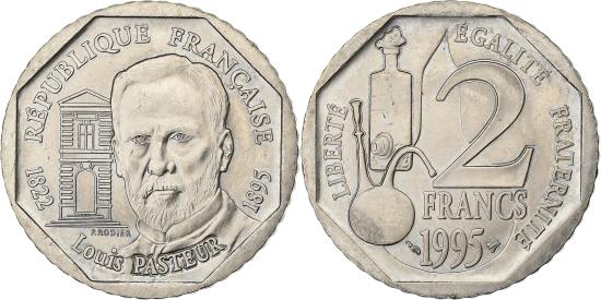 | | France, 2 Francs, Pasteur, 1995, Paris, Nickel, , Gadoury:549, KM:1119 | | | Pasteur, Head of Louis Pasteur facing, building at left, Denomination to right of bottles, date below, Pierre Rodier | | FEATURES |