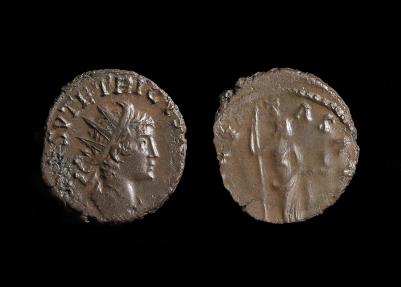 Tetricus II Ae Antoninianus. Trier or Cologne mint. C PIV ESV TETRICVS CAES, radiate, draped bust r. Rev., NOBILITAS AVGG, Nobilitas standing right, holding vertical sceptre and globe. RIC 244. Rare.