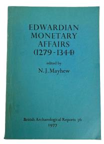 Edwardian Monetary Affairs (1279-1344) by N. J. Mayhew, 1977, 186 pages, A4 format, blue card covers. Near New. BAR Reports 36 from the library of Philip Grierson with his bookplate