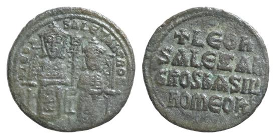 Leo VI the Wise, with Alexander. 886-912. Æ Follis (25mm, 7g). Constantinople mint. Crowned figures of Leo and Alexander