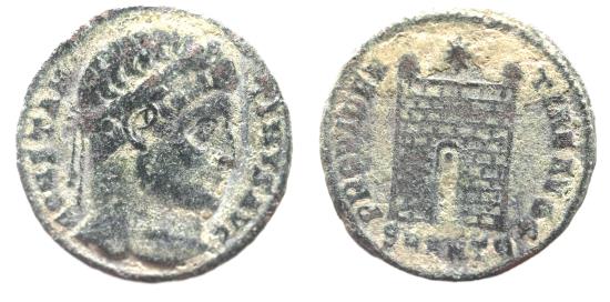 CONSTANTINE I AE FOLLIS. NICE. AS FOUND. CAMP GATE