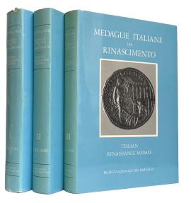 Medaglie Italiane Del Rinascimento Nel Museo Nazionale Del Bargello / Italian Renaissance Medals in the Museo Nazionale of Bargello by Graham Pollard, three volumes complete 1400 - 1640, 1618 pages, well illustrated including 20 color plates, black cloth and boards, dust jackets, housed in cardboard sleeves. Near New.
