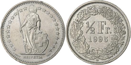 | | Switzerland, 1/2 Franc, 1995, Bern, Copper-nickel, , KM:23a.3 | | | 23 Stars around figure, Value within wreath | | FEATURES |