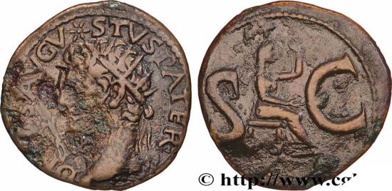 AUGUSTUS Tiberius s Consecration As 15-16 Rome copper Obverse : DIVVS AVGVSTVS PATER Tête radiée dAuguste à gauche (O1) ; au-dessus, une étoile ; à gauche, un foudre Reverse : S|C Figure féminine (Livie ?) voilée et drapée, assise à droite sur un trône, tenant de la main gauche un long sceptre et, de la droite, une patère ; ses pieds reposent sur un tabouret Commentary : Monnaie centrée. Joli revers. Usure régulière. Portrait agréable. Patine marron