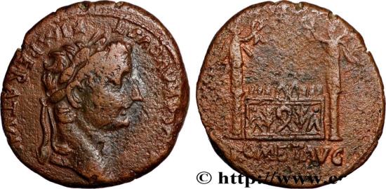 TIBERIUS Caesar As à lautel de Lyon c. 12-14 AD. Lyon copper