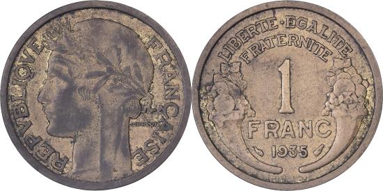| | France, 1 Franc, Morlon, 1935, Paris, Cupro-Aluminium, , Gadoury:470 | | | FEATURES |