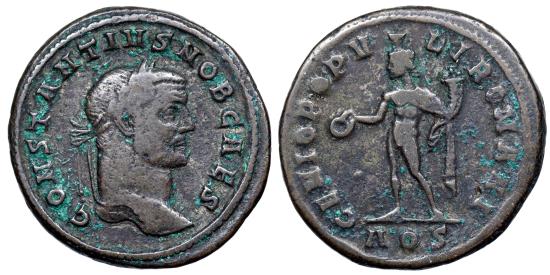 GENIO POPV-LI ROMANI; Genius standing left, holding patera and cornucopiae.