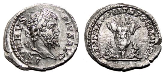 Obverse: SEVERVS PIVS AVG. Laureate head of Septimius Severus right. Reverse: PART MAX P M TR P X COS III P P. Trophy between two bound captives. Superb denarius, practically uncircullated, in EF+ condition, conserving full details on both sides, super bold reliefs and high quality silver with its original luster well preserved. For demanding collectors! RIC 185. Rome mint, AD 202. 3,4 g - 19 mm -------------------------------------------------------------------------------------------------- Visit our site about Numismatics and Archaeology: aeternitas-numismatics.com |