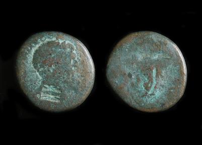 Judea, Legionary Ae2, 81/2-132/5 AD. Possibly Legio XII Fulminata issue. Bust r., thunderbolt within rectangular countermark. Rev., blank.