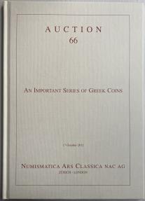 Numismatica Ars Classica, NAC Ag. Auction 66, 17 October 2012, Zürich. An Important Series of Greek Coins. 48pp., 84 lots, colour photos and enlargements. Hardcover, used like new.