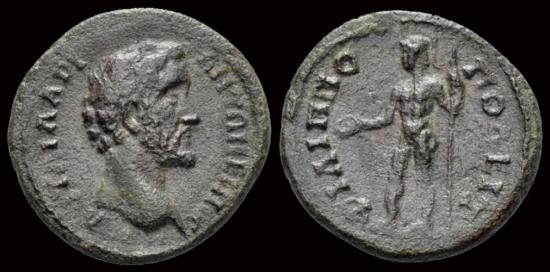 Thrace Philippopolis Antoninus Pius AE assarion nude warrior standing left